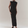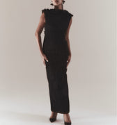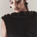 The raw, gathered edges of the fabric border around you, continuing the deconstructed narrative within these small details. A tight pencil skirt brings everything to a sumptuous halt. The plissés following all the way down to the hem, to make for a very artisanal punctuation.