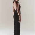 This dress is an exercise in masterminding the silhouette of the body. I wanted to have the figured sculpted by the tiniest and most rigorous plissés. From the neck to the hem, there are hundreds of rows of individually pleated meters of silk creponne chiffon.