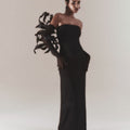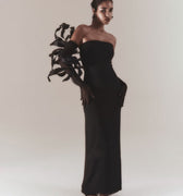 This botanical element is yet again explored by the team. Each leaf is created one by one, at times taking two hours for a singular piece. There are a number of disciplines at play in creating a sculptural addition. Be it silk floral artistry, metal work, or corsetry, this masterpiece requires many techniques but proves to be a most beautiful flight of fancy.