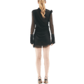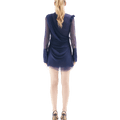 A mille-feuille technique is used is used to create the large cuffs and collar. Five layers of cut chiffon make up the elegant high collar and cuffs; while a strip of chiffon trails off.