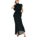 A mermaid style skirt is cut with a high-low raw edged hem from the ankles. It follows the curves of your legs and elongates your body.