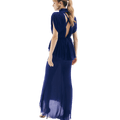 The high neck trails down your body and cinches at the waist, creating a peplum to accentuate your figure. The modesty of the front gives way to the drama of the back.